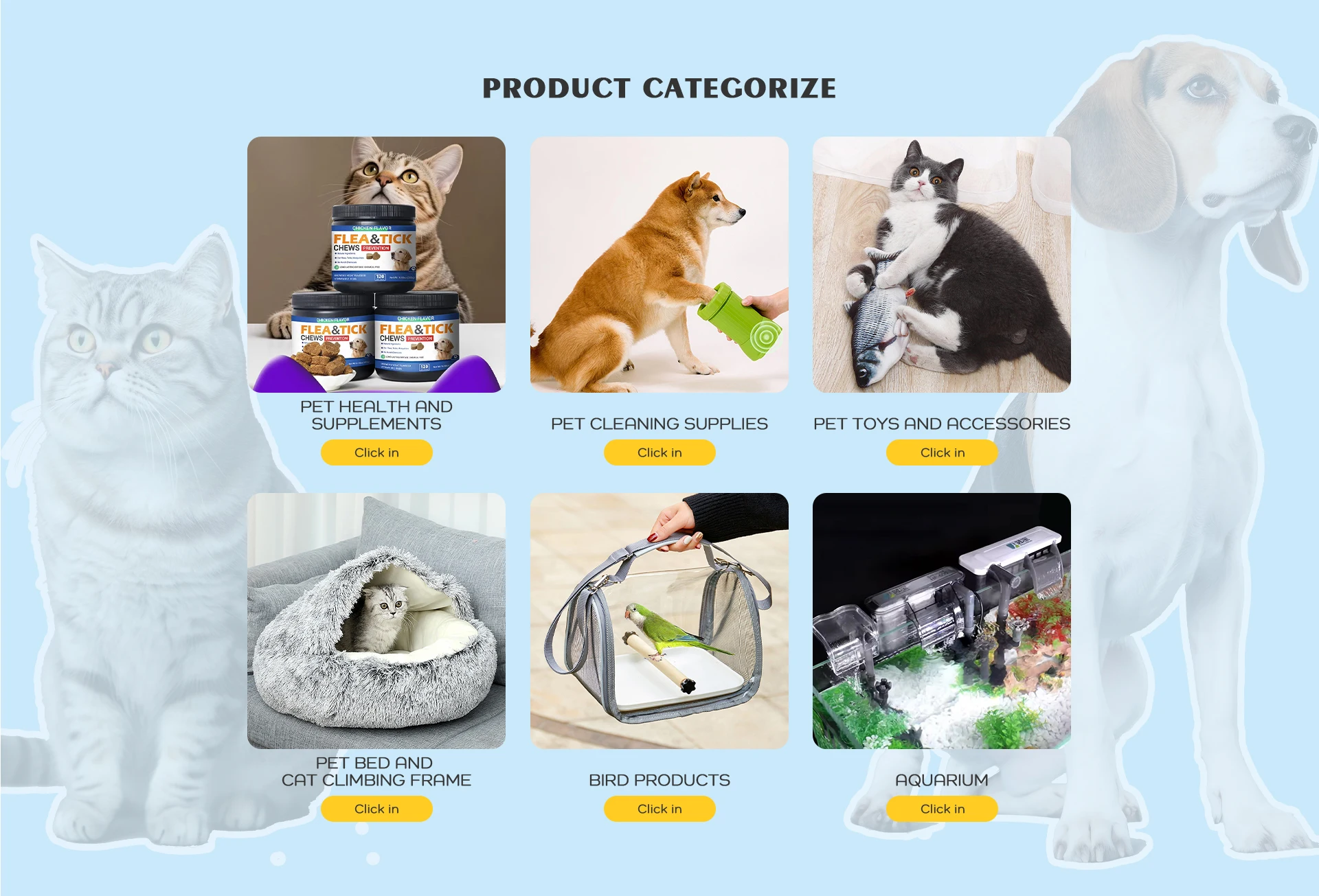 Productos principales:Salud y suplementos para mascotas, Un nido/almohadilla/cama/bolsa para mascotas, Juguetes para mascotas, Productos de limpieza para mascotas, Suministros para acuarios